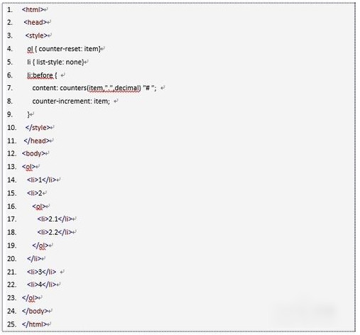 通过content 属性来改变列表的编号。这里主要介绍其中的counter用法