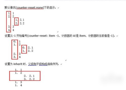 下面通过counters方法将所有的计数器显示,以圆点(.)分隔,list-style-tyle为decimalcontent: counters(item,".",decimal) "# ";