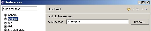 (6)找到Android项,通过Browse按钮指定Android SDK的安装位置