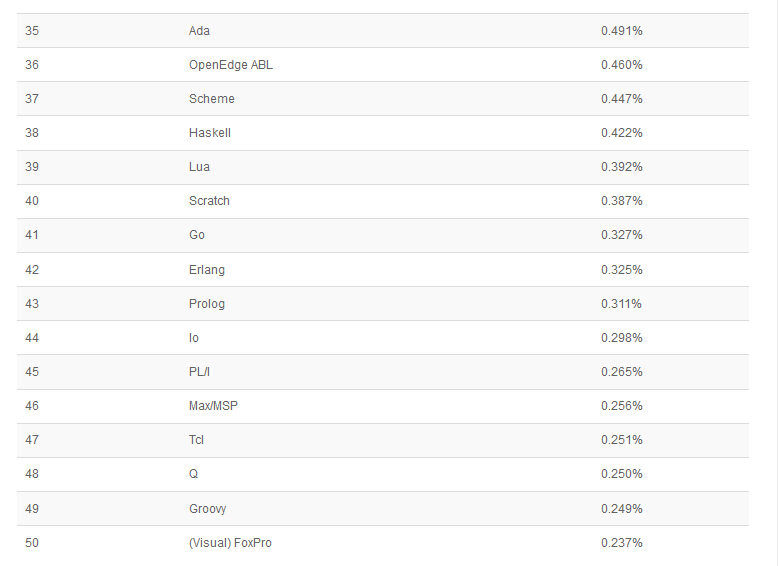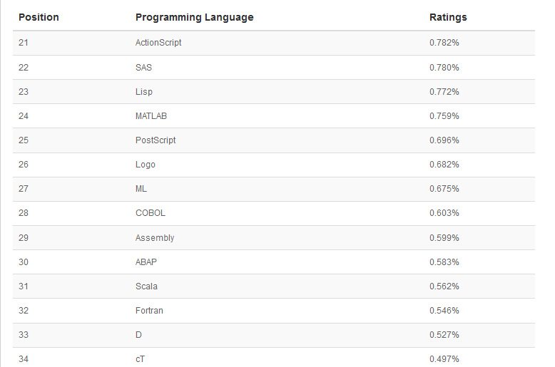 该指数可以用来检查你的编程技能是否仍然是最新的或作出什么开始建立一个新的软件系统时,编程语言应采取的战略决策。