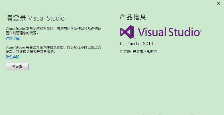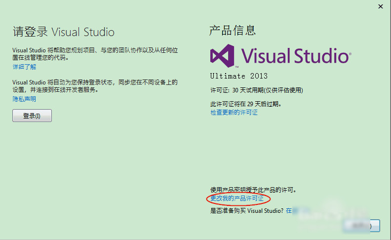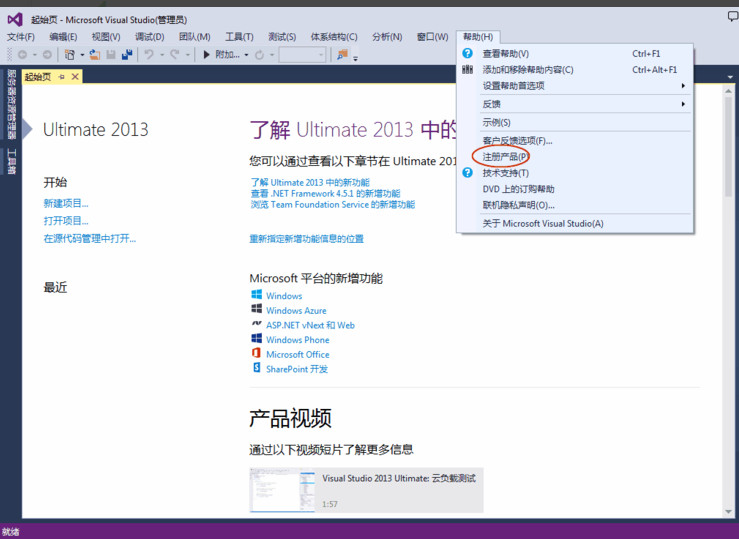 7、最后要给VS注册一下,不然软件是有30天的试用期。打开VS2013,在工具栏中找到帮助选项卡,点击注册产品,会弹出一个对话框,里面会显示软件的注册状态