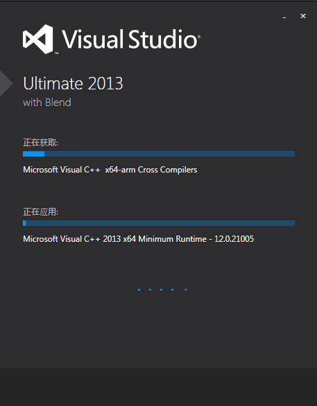 5、等待大概30分钟,就可以完成安装。安装过程中,VS会占用很多的系统资源,所以最好不要开启其他软件,等待安装