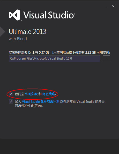 3、自定义选择安装路径时,注意所属路径的预留空间要充足,否则安装会失败,同意许可条款,进行下一步