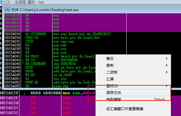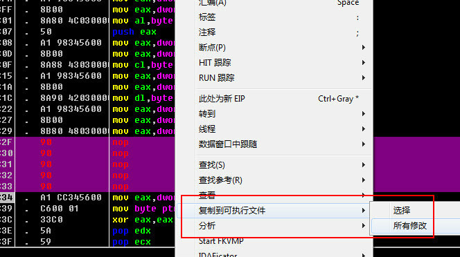 右键->复制到可执行文件->所有修改,再点击全部复制即可。