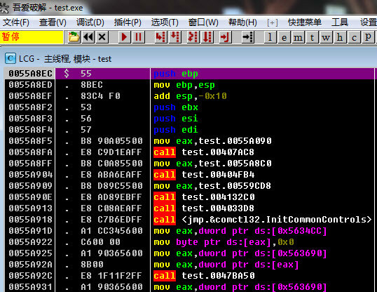 F3,打开test.exe。界面如下