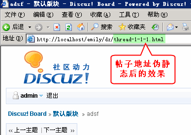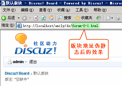 “Rewrtie 兼容性”:如果您的服务器不支持 Rewrite 规则中的中文字符,请选择“是”。对于没有此问题的服务器,可以选择“否”。上面两项设置完毕“提交”保存即可。这个时候返回到论坛首页随便打开一个版块或者一个帖子即可看到 Discuz! 的 Rewrite 伪静态配置成功!