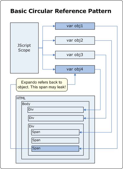 document.createElement("");var childDiv =document.createElement(""); // This will leak a temporary objectparentDiv.appendChild(childDiv);hostElement.appendChild(parentDiv);hostElement.removeChild(parentDiv);parentDiv.removeChild(childDiv);parentDiv = null ;childDiv = null ;}hostElement = null ;} function CleanMemory(){var hostElement = document.getElementById("hostElement"); // Do it a lot, look at Task Manager for memory responsefor (i = 0 ; i < 5000 ; i ++ ){var parentDiv = document.createElement("");var childDiv = document.createElement("</script>"); // Changing the order is important, this won’t leakhostElement.appendChild(parentDiv);parentDiv.appendChild(childDiv);hostElement.removeChild(parentDiv);parentDiv.removeChild(childDiv);parentDiv = null ;childDiv = null ;}hostElement = null ;}