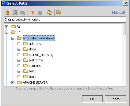 进入选择路径对话框,然后指定到我们Android SDK的目录。
