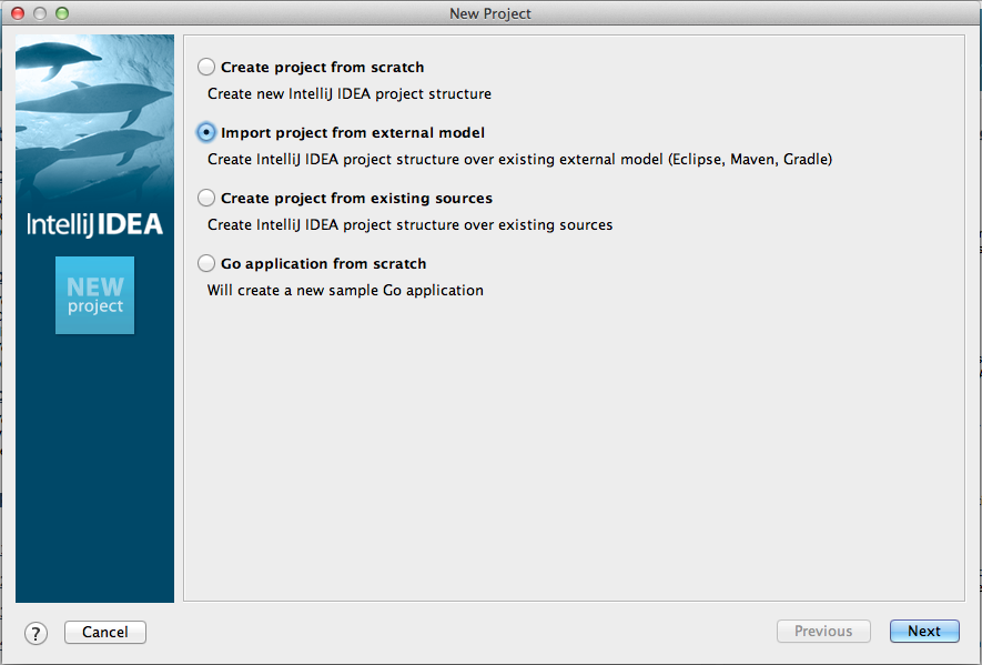 1、New Project,选择Import project from extenal model,一直下一步直到完成