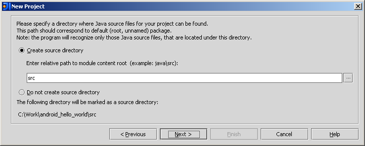 在第三个页面选择Create source directory选项,然后我们一般接受默认的src的名字!