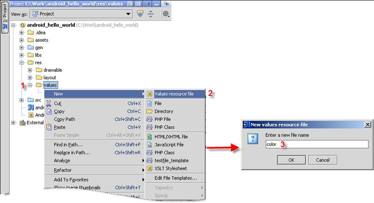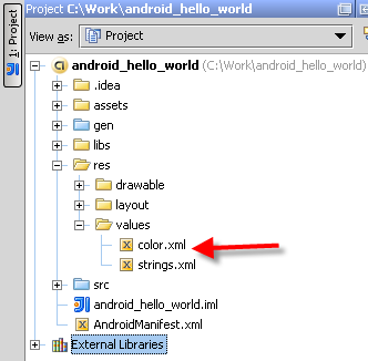 我们需要为我们的应用程序添加三件事,一个layout,一个string,一个color这些都是为了显示。