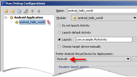 android:layout_height="wrap_content" android:text="@string/explanation" /> 然后你会看到IntelliJ会红色高亮显示出来不能解析的代码。 让我们很高兴的是你可以通过Alt+Enter自动修复错误(1),他会帮助你在strings.xml中添加你缺失的string配置。 IntelliJ帮我们添加我们没有添加的string字符串。 应用程序描述都在这个string标签里边( 这个简单的Android程序阐述了IntelliJ IDEA文件流在Android开发环境中的应用。 如果你打开R.java文件,你会发现IntelliJ IDEA已经将新的string字符串添加到string资源里了。 现在让我们添加颜色字符串string_color资源定义好了。 在Project窗口双击一个在编译窗口打开color.xml文件,添加“#”(1)开头的十六进制的标识定义颜色资源到resources标签之内,例如,#ff00ff77 IntelliJ IDEA帮我们提供了预处理添加制定颜色的操作(2) 添加颜色资源 现在让我们开始定义显示颜色的字符串,做这个之前让我们先来创建color的资源文件用来定义string_color 在Project窗口的树列中,你可以点击values文件夹 (1) 选择 New->Values resource file (2)。在New values resource file对话看中指定color并建立一个新的文件(3)。 点击OK,IntelliJ IDEA就会帮我们建立一个新的文件: 现在,让我们添加string_color资源定义。在Project视图双击打开color.xml文件。.添加 Xml代码 在我的例子中颜色为#ff00ff77,就像你你看到的(1),IntelliJ IDEA在左边区域给我们展示了你定义的颜色(2): 就像你猜的这些配置都自定的映射到R.java: 现在,让我们应用刚才定义的string。在main.xml文件,寻找 Html代码 android:layout_height="wrap_content" android:text="@string/explanation" /> 上边中通过应用使用配置的字符串:android:text="@string/explanation" Xml代码 android:textColor="@color/string_color" 上边是怎么使用颜色字符串 运行你的应用 在project的创建过程中,IntelliJ IDEA自动的生成了运行配置android_hello_world。要想马上运行程序,我们只需要配置虚拟设备,或者直接使用手机,运行程序。 配置虚拟Android设备 从Run/Debug Configuration (1)下来列表选择Edit Configurations。 IntelliJ IDEA打开Run/Debug Configurations对话框展示默认运行android_hello_world 设备的详细信息配置 (1)。 点击Browse按钮接下来进入Prefer Android Virtual Device for Deployment下拉列表(2).在这里Select Android Virtual Device对话框,点击Create: 在这Create Android Virtual Device 对话框打开接受以MyAvd0为名字的默认的设备(1): 当你点击OK之后, IntelliJ IDEA让你进入Select Android Virtual Device对话框,在这里你就可以看到你所定义的设备的列表了。 点击OK保存配置然后返回Run/Debug Configurations对话框,进入Prefer Android Virtual Device for Deployment下拉列表中现在显示你定义的emulator: 完成这些配置的定义之后点击OK。 值得高兴的是,你只需这样配置一次,IDE会帮助记忆这些的。 运行程序 现在你做完了所有的工作了,让我们launch我们的应用吧。 在工具栏点击 (2)然后是Run/Debug Configuration(1)下拉列表选择android_hello_world已经默认被选择了。 IntelliJ IDEA launches 我们配置的 emulator: 接下来IDE展示Hello world应用然后显示到屏幕: 到这里就恭喜你了!你就可以做简单的Android应用了。 IDEA的各种优势 强大的智能提示 快捷的代码生成器 按Option+Enter可以看到IDEA给出的生成代码菜单 完美的Xml资源支持 Eclipse的ADT在这个功能上的缺失,真能让人抓狂。 2、在Event Log中能看到"Frameworks detected: Android framework is detected in the project Configure",点Configure配置Android框架即可。
