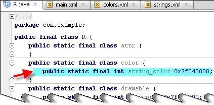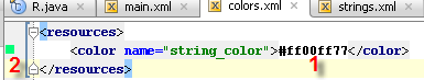 3、创建Android程序的元素,管理文件资源,例如strings,colors等等,通过R.java能够看到与之紧密相联的资源