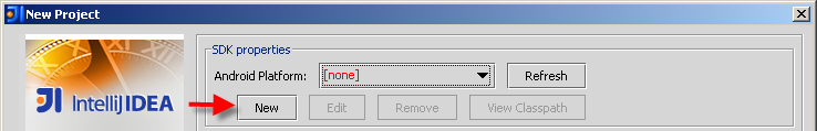 最后我们就要指定Android SDK与我们的IDE了,点击New到SDK properties选择一个应用程序要使用的Android platform。