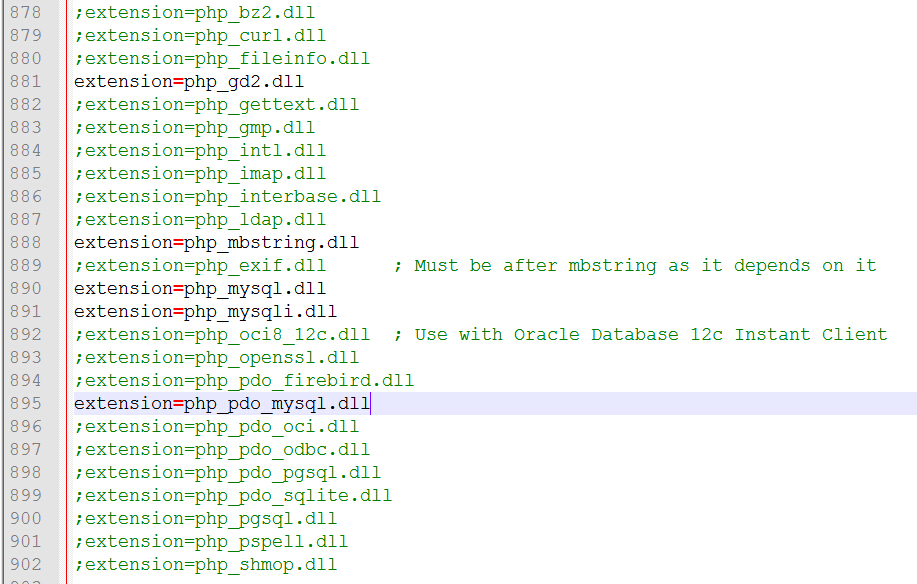 然后,找到以下扩展选项,去掉前面的分号(启用):