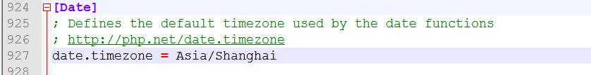用记事本打开编辑,搜索“date.timezone”,找到“;date.timezone =”并编辑为:"date.timezone = Asia/Shanghai,如下:
