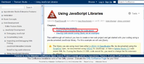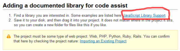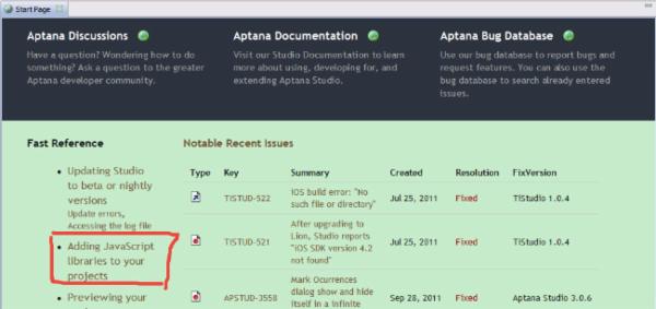 (3)在Aptana启动的首页(Start page),有一个链接“Adding JavaScript Libraries to your projects”,