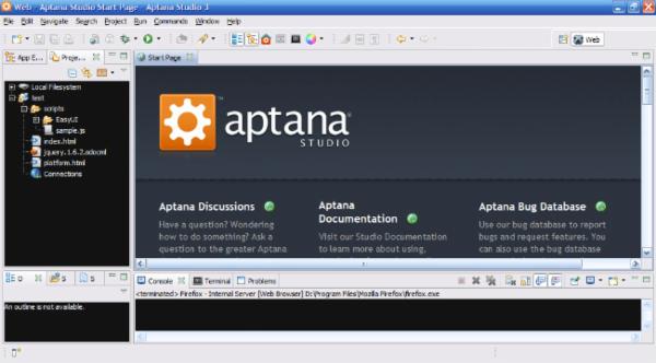 1.下载aptana studio 3,可以选择作为eclipse插件的aptana版本下载,也可以下载能够独立运行的aptana。