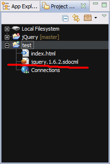 至此,jquery的库文件已经产生,就是上图中的“jquery.1.4.2.sdocml”和“jquery.1.6.2.sdocml”。