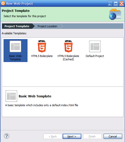 这个应该都会建的吧,File—>New—>Web Project,Project Template中我选择的是“Basic Web Template”,如下图所示: