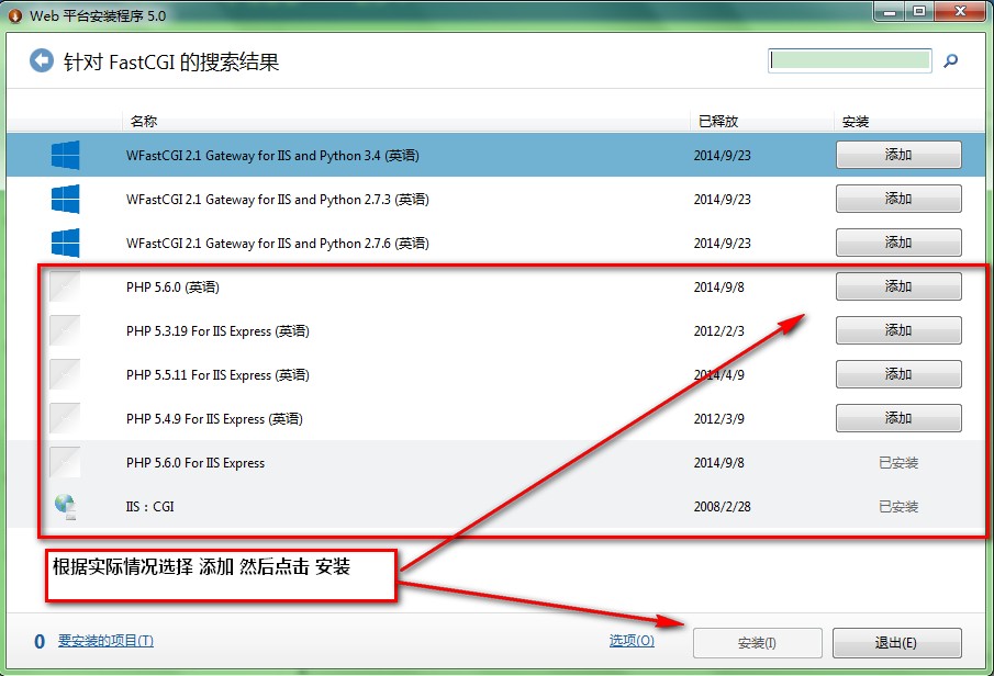 1、微软提供的‘web平台安装程序’地址:http://www.iis.net/downloads/microsoft/fastcgi-for-iis