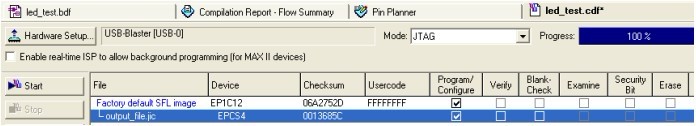 11.确定链接好JTAG电缆后,点击Start,QuartusII会先配置FPGA,然后再有FPGA烧写配置芯片。