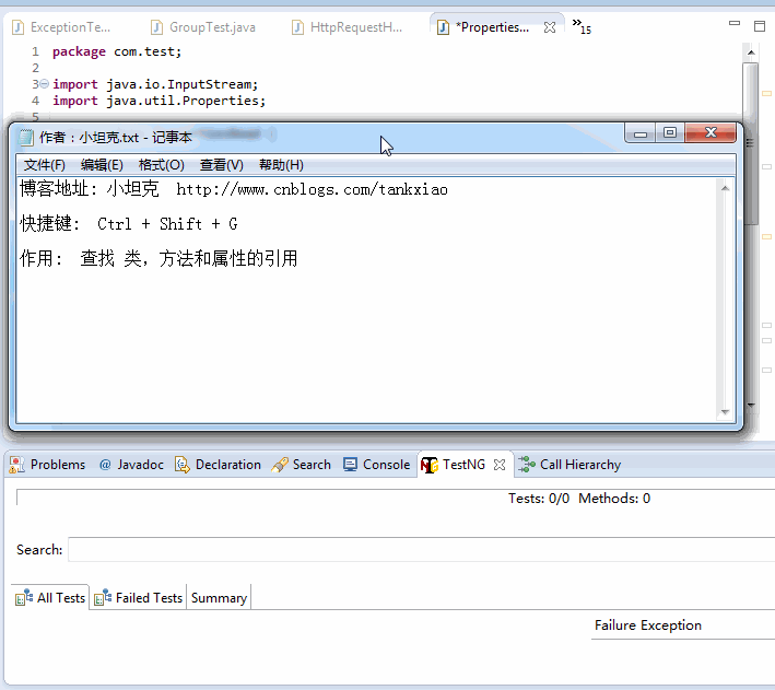 查找类、方法和属性的引用。这是一个非常实用的快捷键,例如要修改引用某个方法的代码,可以通过【Ctrl+Shift+G】快捷键迅速定位所有引用此方法的位置。
