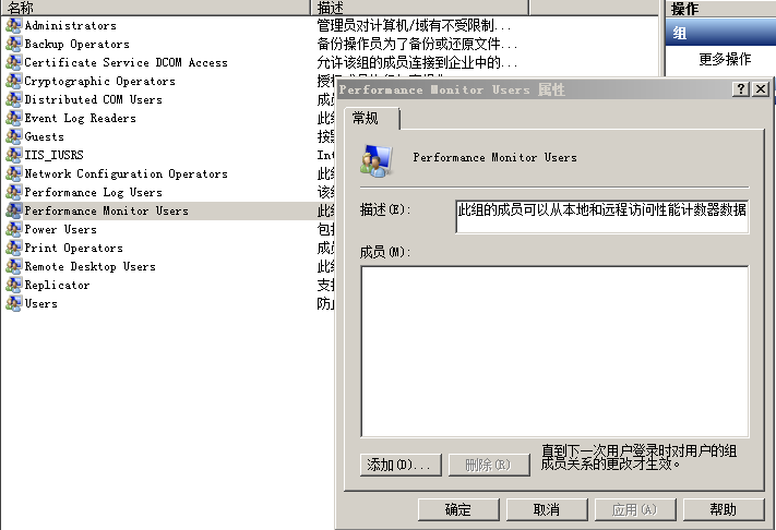 将域账户添加到Performance Monitor Users,使域账户具有远程访问性能计数器的权限。