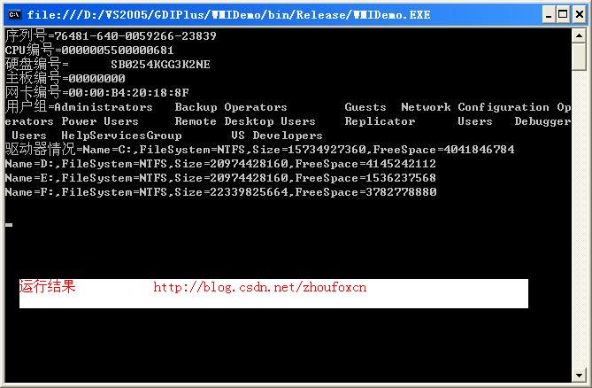 最后说明:虽然绝大部分Windows操作系统已经安装了WMI(根据微软官方说法是自WinME以后的Windows系统包括WinME都安装了),但是不能保证上面的代码能在所有的Windows操作系统之上,如Win95之类,如果在不支持WMI的Windows系统上运行WMI,那么需要从MSDN下载WMI。