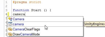 除了JavaScript函数,C#和BOO的脚本都需要预先载入类库。这里以C#为例: