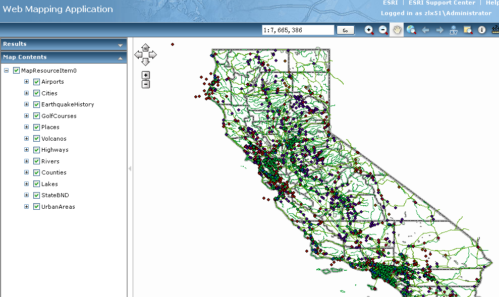最终,发布网站成功(arcgis server 不是很稳定,有时候发布的地图为空白的,有时候又不会,坑爹啊!!!):