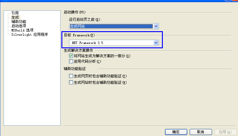 4.使用vs2010创建web mapping application,出现“连接到无法连接到asp.net development server”的错误解决方法:打开网址属性页,网站的目标Framework由4.0改为3.5如下图: