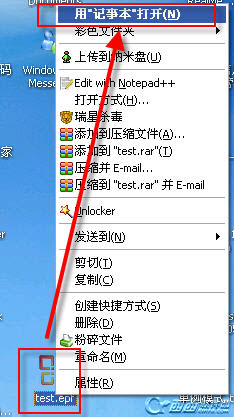 7. 在桌面找到刚在保存的文件“test.epf”,右键选择“用记事本打开”。