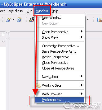 1.打开MyEclipse 6.5,然后“window”→“Preferences”