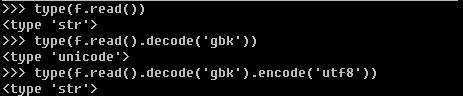 一般流程是str利用decode方法根据str的编码将其解码为unicode字符串类型,然后利用encode根据特定的编码将unicode字符串类型转换为特定的编码。python中str和unicode属于两种不同的类型,如下。