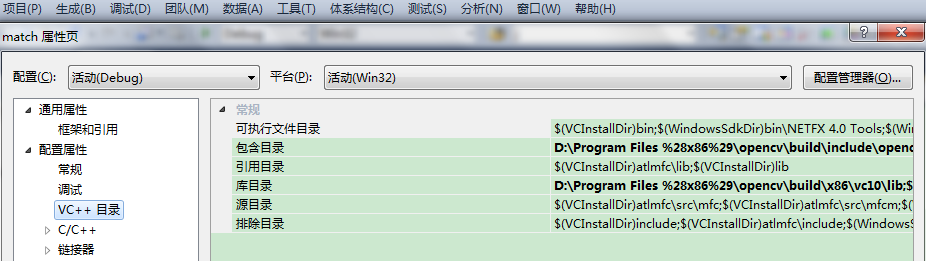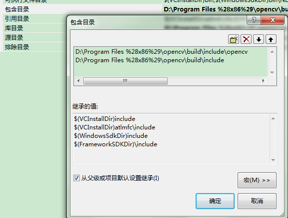但在运行别人的opencv项目时,可能别人直接引用了上述目录的子目录路径,如果出现include错误,则再添加”%opencv%\build\include\opencv”和(或)”%opencv%\build\include\opencv2”,即可解决问题。