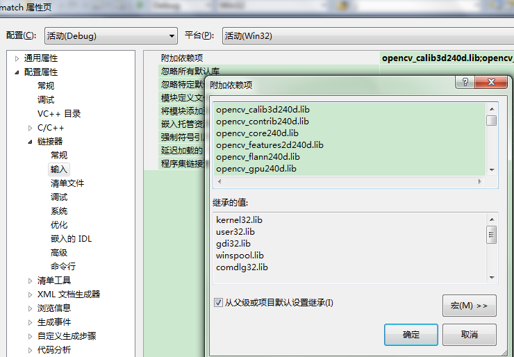 d输入 opencv_core244.lib;opencv_highgui244.lib;opencv_imgproc244.lib