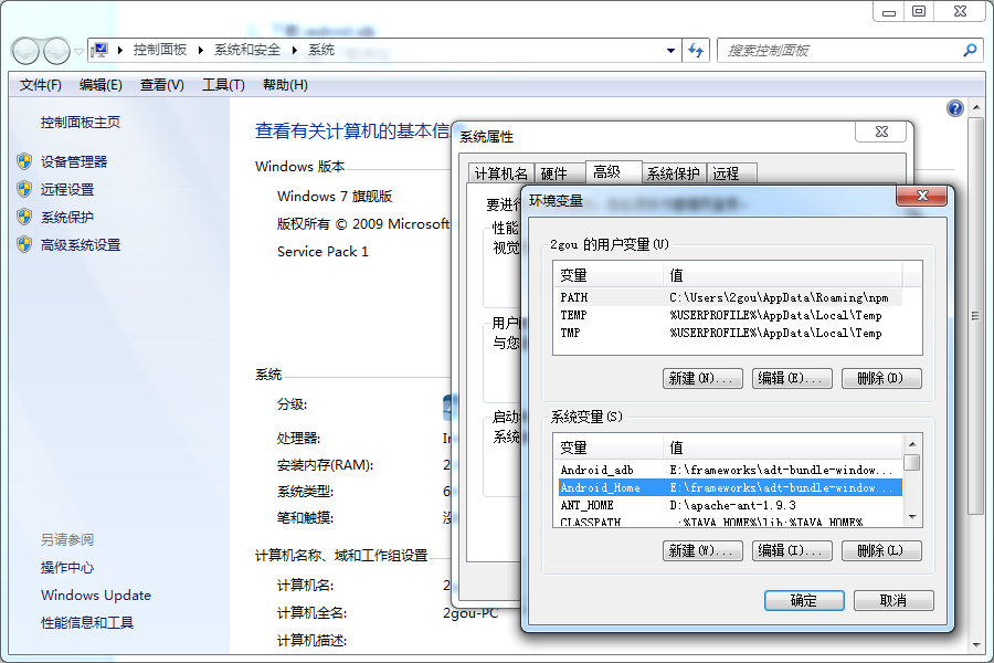 将android sdk添加至计算机全局环境变量中