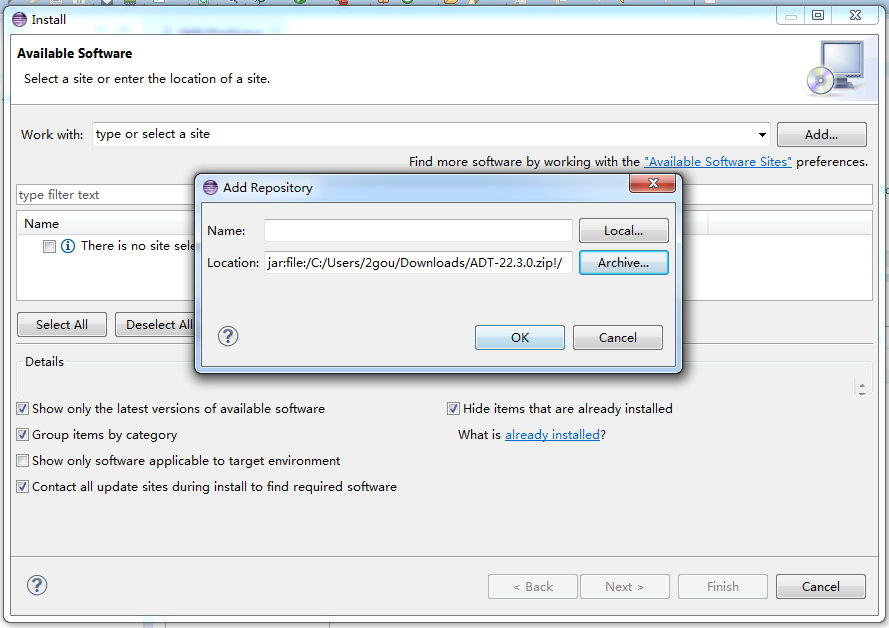 打开Install面板,点击add...按钮,再点击archive...按钮找到你刚才下载的zip包,确定再安装完重启eclipse即可