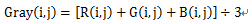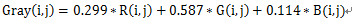 Gray(I,j)为转换后的灰度图像在(I,j)点出的灰度值。由于人眼对颜色的感应不同,有了下面的转换公式: