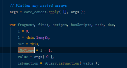 iNoClone = l - 1, 是否为克隆节点,根据后面的大意,如果当前的jQuery对象是一个合集对象花