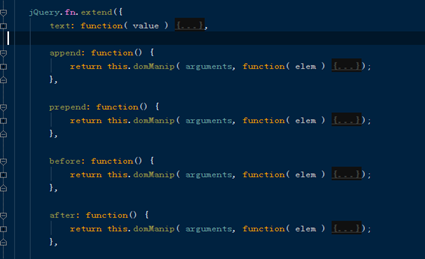 也就是domManip存在的意义了,针对很多类似接口的参数抽象jQuery内部有很多这样的函数了,如之前属性操作中的jQuery.access