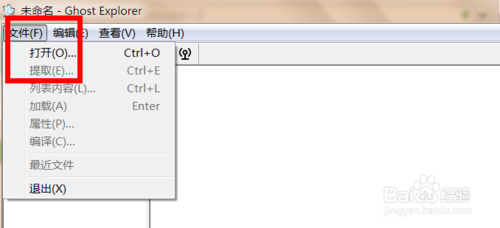 3.点击左上方的文件。然后点击打开。找到gho文件所存放的位置。就可以打开过后文件了。