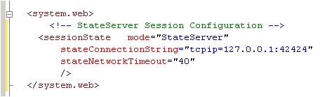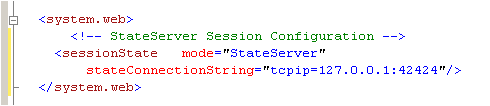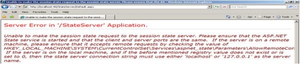 2、 State Server模式:Session数据被存储于aspnet_state.exe应用中,他在Web服务之外保存Session数据,所以Web服务出现问题不会对他的Session数据造成影响,在将Session数据存储到StateServer之前需要序列化对象,在Web Farm中我们能安全地使用这个模式。