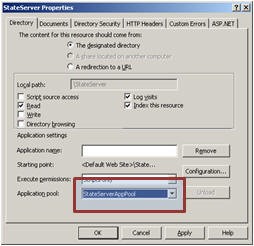 现在,右键单击一个虚拟目录(我正在使用的StateServer站点)分配StateServerAppPool给StateServer虚拟目录。
