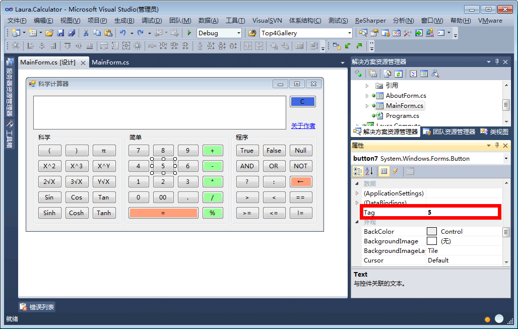 为了节省代码,所以每个按钮 公用 btnInput_Click 事件;为了作为区分,所以 我们设置每个 按钮的Tag 值: