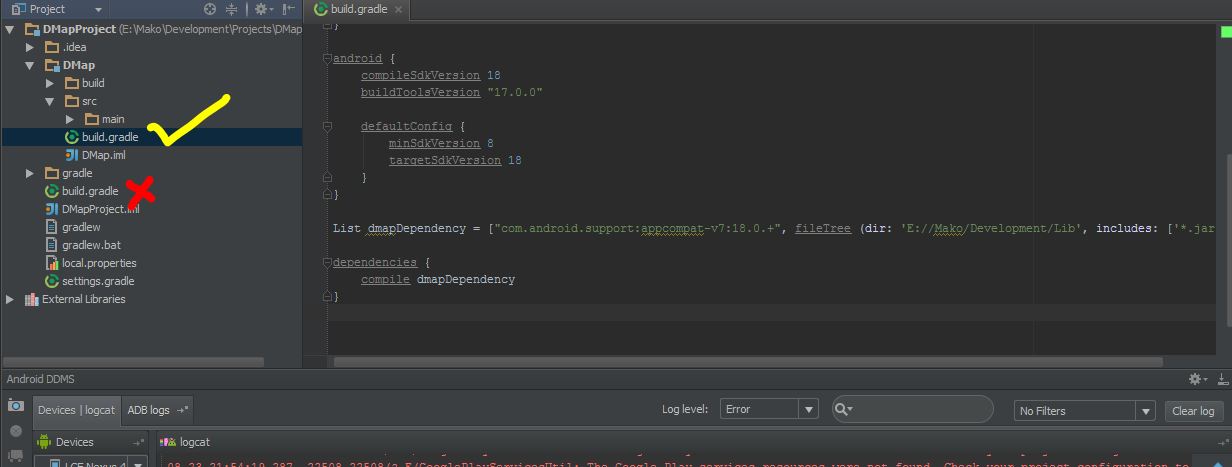PS:不要忘了把$GOOGLE_PLAY_LIB 改成你本地的目录,如 E://Android/Development/Lib
