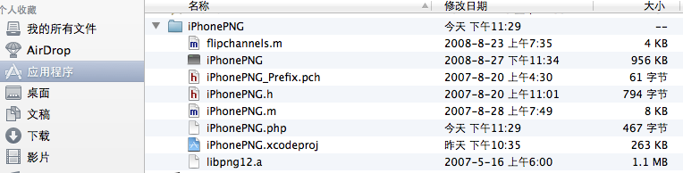 查看路径,选中iphonepng中的某个文件,邮件查看显示简介,该目录为/Applacations/iPhonePNG