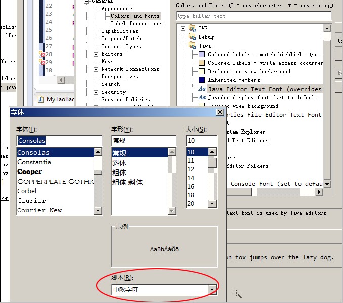 eclipse代码大小和字体更改:
