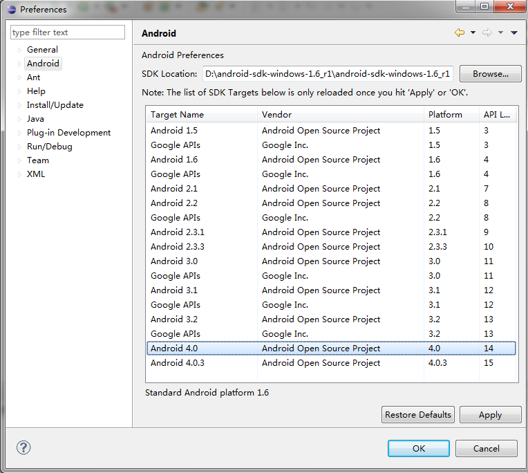 Android开发环境最新配置(eclipse SDK +Android SDK+ADT)